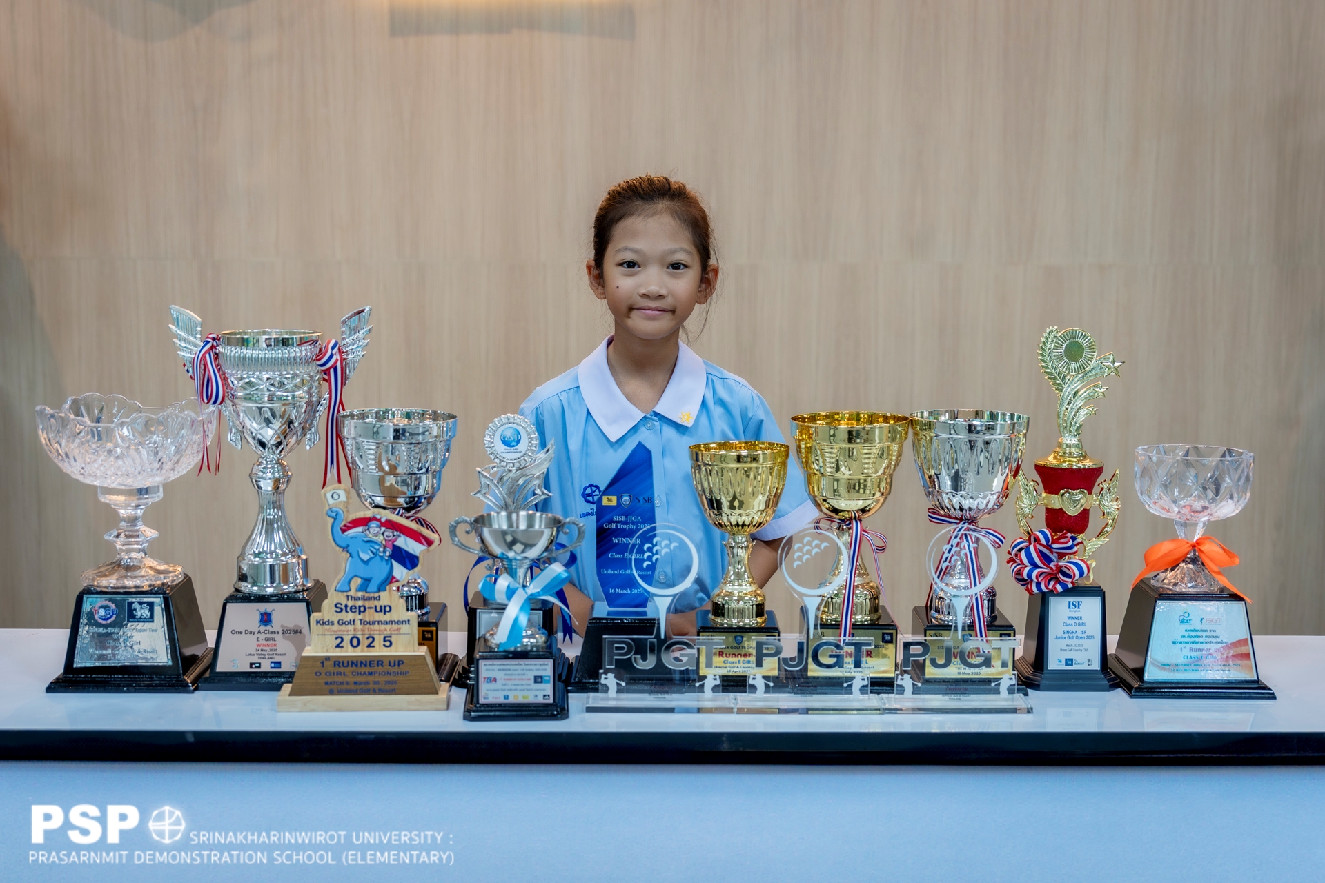 ด.ญ.เพลงไพเราะ วิสุทธิวัฒน์ ระดับชั้น ป.3/4ได้รับรางวัลจากการแข่งขันกีฬากอล์ฟ 9 รายการ